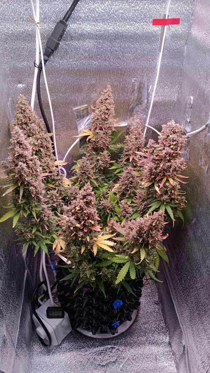 Для наибольшего количества трихом, и преобладания оранжево фиолетовых оттееков,снизил ночные на 10 градусов,перед харвом.больше со2 подача в ночь.получилось нечто.а да,последние 3,4 дня,держал в полнои темноте 24 /0