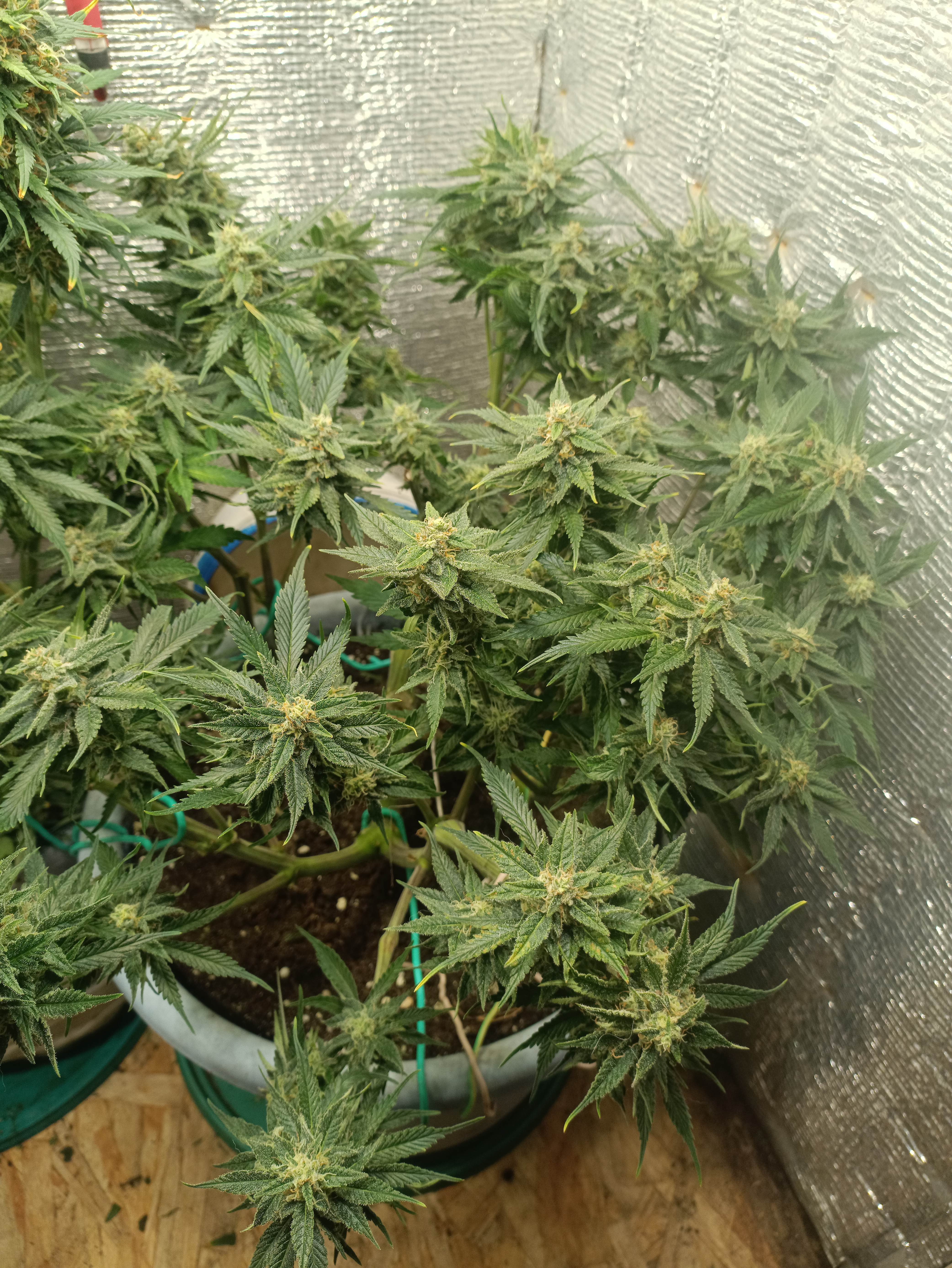 Продолжаю отчёт о Звёздной Доуг. Семьдесят пятый день от каски. Удивила своим взрывным ростом. К этому был не готов. Была выбрана неправильная стратегия выращивания. В результате сейчас растиха выглядит так. Мощная центральная кола. Сантиметров 30 мощная макуха. А ниже штук 9- 10 боковых кол. Так как они сильно ниже, думаю будет там процентов 70- 80 попкорна. На семидесятом дне почистил эти колы. Оставил процентов 50- 60. С попкорна снял пробу. Согласен с теми, кто за бодрый хай. Скорее дневная позитивная. Хотя может дойти и до паники. Так что надо аккуратнее. Но , если честно, не впечатлила. Ну это ладно. Теперь стартанула вторая семкв. С учётом полученного опыта принял решение сажать в десятилитровом горшке. Старшая в двадцатилитровом стоит. И буду до пятого этажа все отрезать. Смысла нет попкорн растить. Уже пятый день от каски младшенькой. И уже понятно, что не такая резвая, как старшая. И вылезла только на пятые сутки. И эту я давлю светом, горшок высоко стоит. 50000 люксов. Вообщем, скоро дальше отпишусь и по первому кусту и как второй себя покажет. Но скорее всего больше я Звездную Доуг поднимать не буду. А запах у готового продукта приятный. Хотя при цветении дизелит. Как то так.